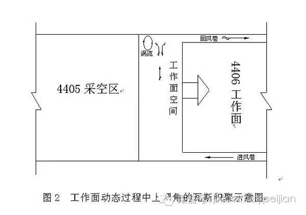 1、井生產(chǎn)過程中,采煤工作面上隅角作為采空區(qū)漏風(fēng)的交匯點和生產(chǎn)中不斷暴露的新鮮煤壁擴散出來的大量瓦斯,在上隅角處形成渦流,造成瓦斯積聚。